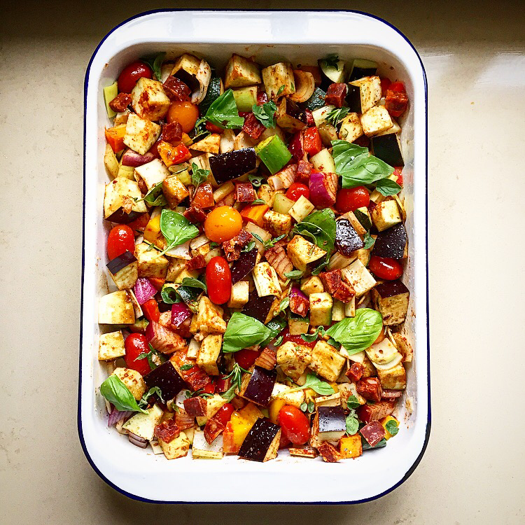Chicken, Chorizo & Roasted Vegetable Tray Bake