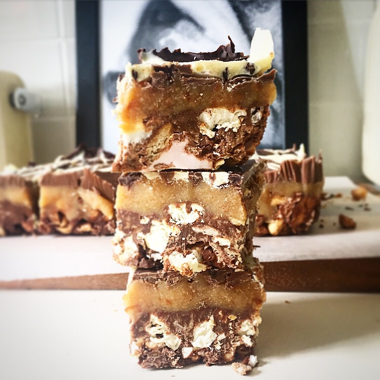 This recipe is definitely not for the faint hearted, in fact It’s best not to even think about the calorie content! You’ll only be able to manage a small square anyway leaving you with the lovely job of making 15 other people happy with a slice too! It’s a lot of fun to make and it does taste amazing, I love the combination of salty and sweet. It’s also great for using up any leftover chocolate and eggs from Easter (as if that’s a thing) or you know you can just go and buy more chocolate instead!