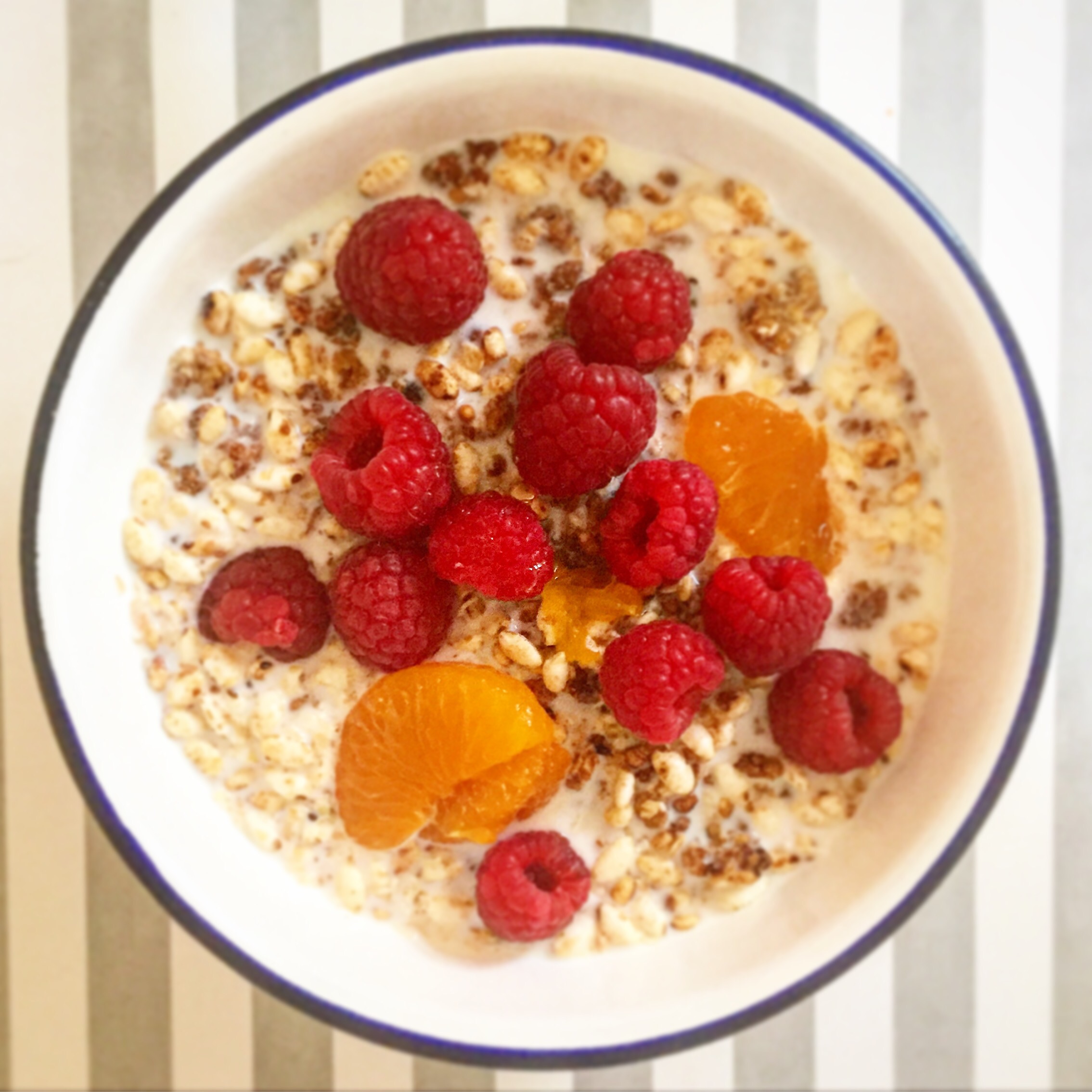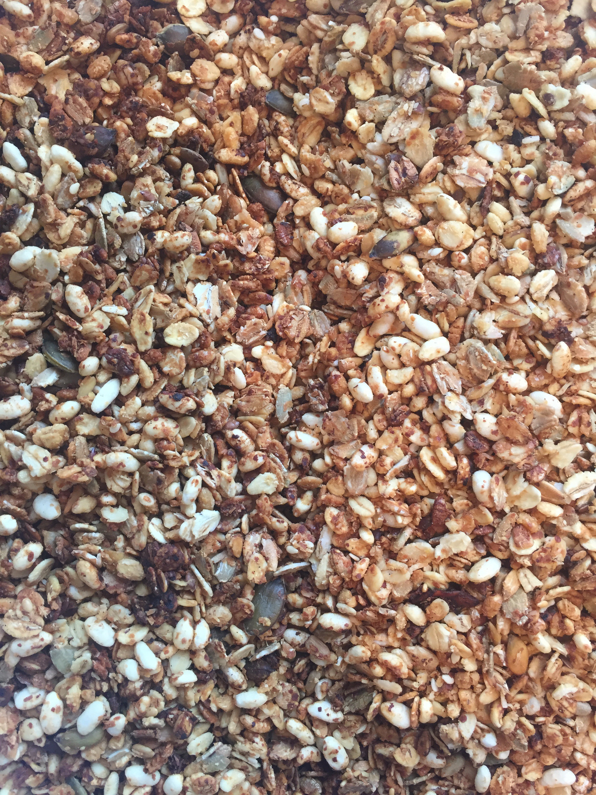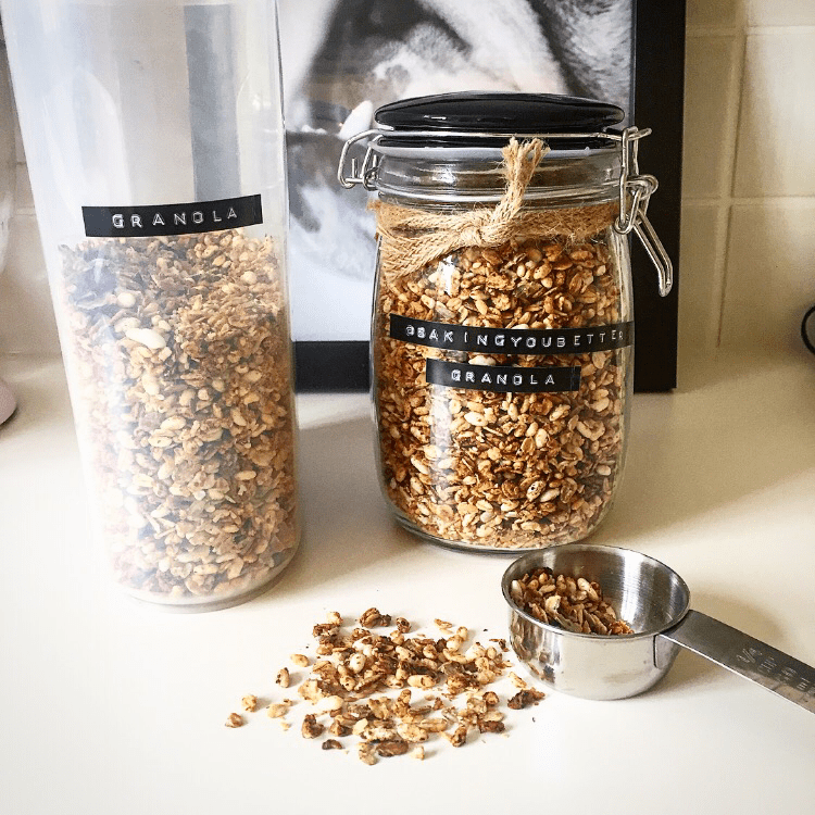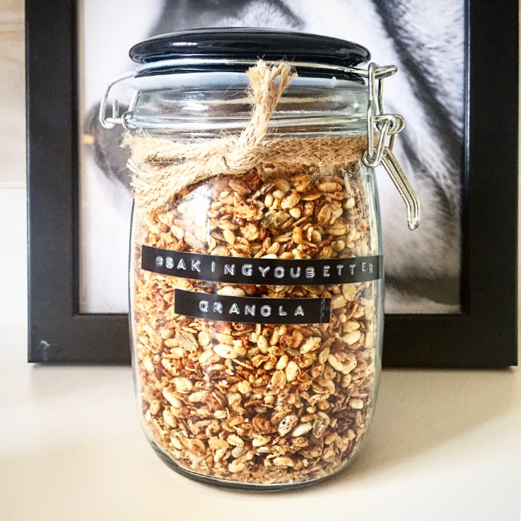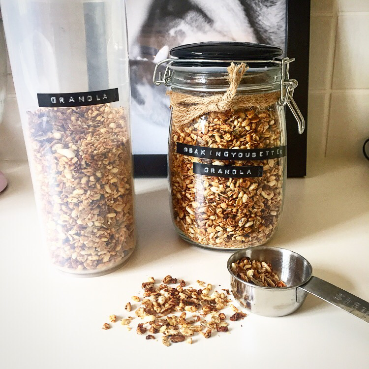 This is my simple recipe for a delicious reduced sugar granola. You’ve heard me talk about the benefits of a good breakfast before and I really can’t repeat it enough. Often the foods that are most convenient are the ones that are full of additives, sugar and preservatives. We don’t want those in our bodies but often a lack of time means that we are reaching for the sugary cereals even when we know we shouldn’t. Make up a big batch of this granola when you have a spare hour and keep it in a plastic tuppawear and you’ll always have the freshest cereal on hand, free from junk and ready to eat in moments.