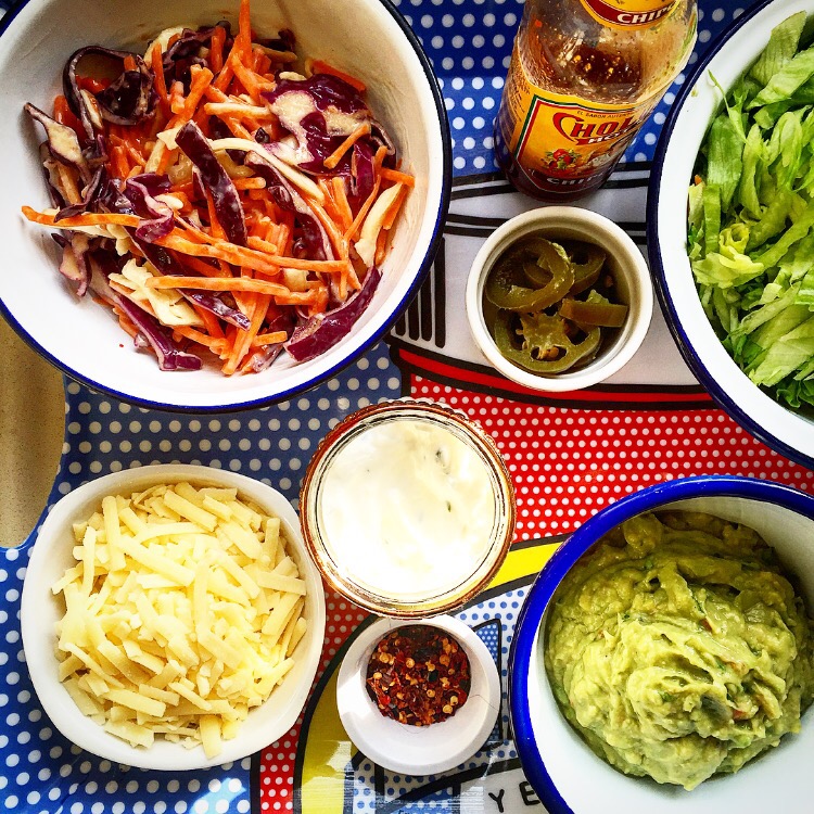 I like to serve this with homemade guacamole, shredded lettuce, salsa, sour cream or yogurt and grated cheese. But you could serve with rice, a baked potato or sweet potato, slaw….whatever takes your fancy!! Happy cooking.