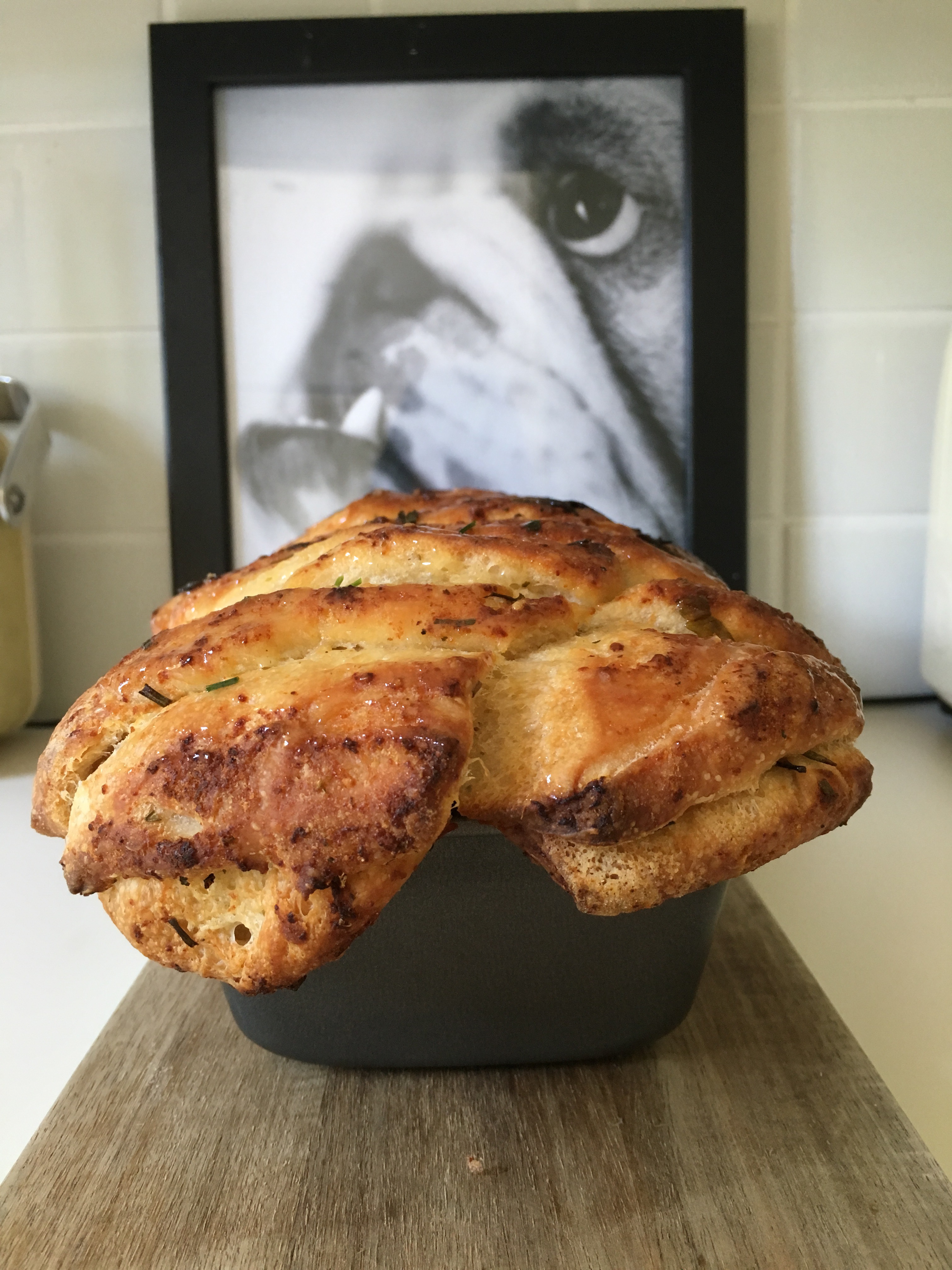 The recipe I decided to create this week is for a pull apart garlic butter loaf. This is a good one to try out for a beginner as it’s quite rough and ready and there’s no shaping to be done. It’s a basic white mixture that has the addition of delicious herby, garlic butter and some grated cheese too. What’s not to like? While I’ll admit this might not be the healthiest of breads, a little bit of an indulgent treat from time to time is definitely necessary plus I’d take a few chunks of this buttery loaf over a chocolate bar or a slice of cake any day of the week. Bread is definitely my treat of choice whether it be pizza, a square of salty, rosemary focaccia or a simple bacon sandwich I’m all about those carbs!