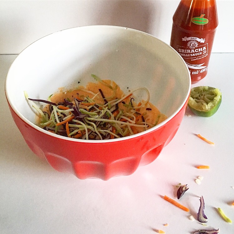 300g bag already shredded slaw vegetables (shredded cabbage, carrots, onions etc) Asda and Morrisons sell this, discard the sauce if it comes with one you just want the veg to save time and shopping.