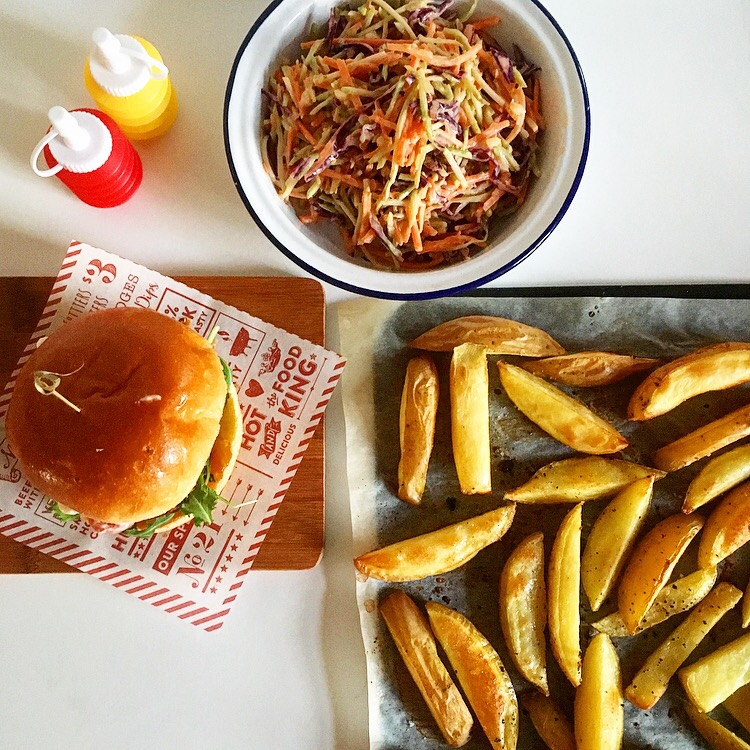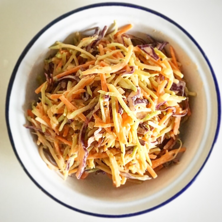 I’ve added some turmeric to the marinade as it’s often described as one of the most powerful herbs on the planet, it has antibacterial, anti-inflammatory, anti-carcinogenic, antifungal and antidepressant properties so is a great addition to these burgers! I’ve boosted the veg count with a big helping of rainbow slaw that’s dressed with zesty lime and creamy yogurt rather than high fat mayonnaise.