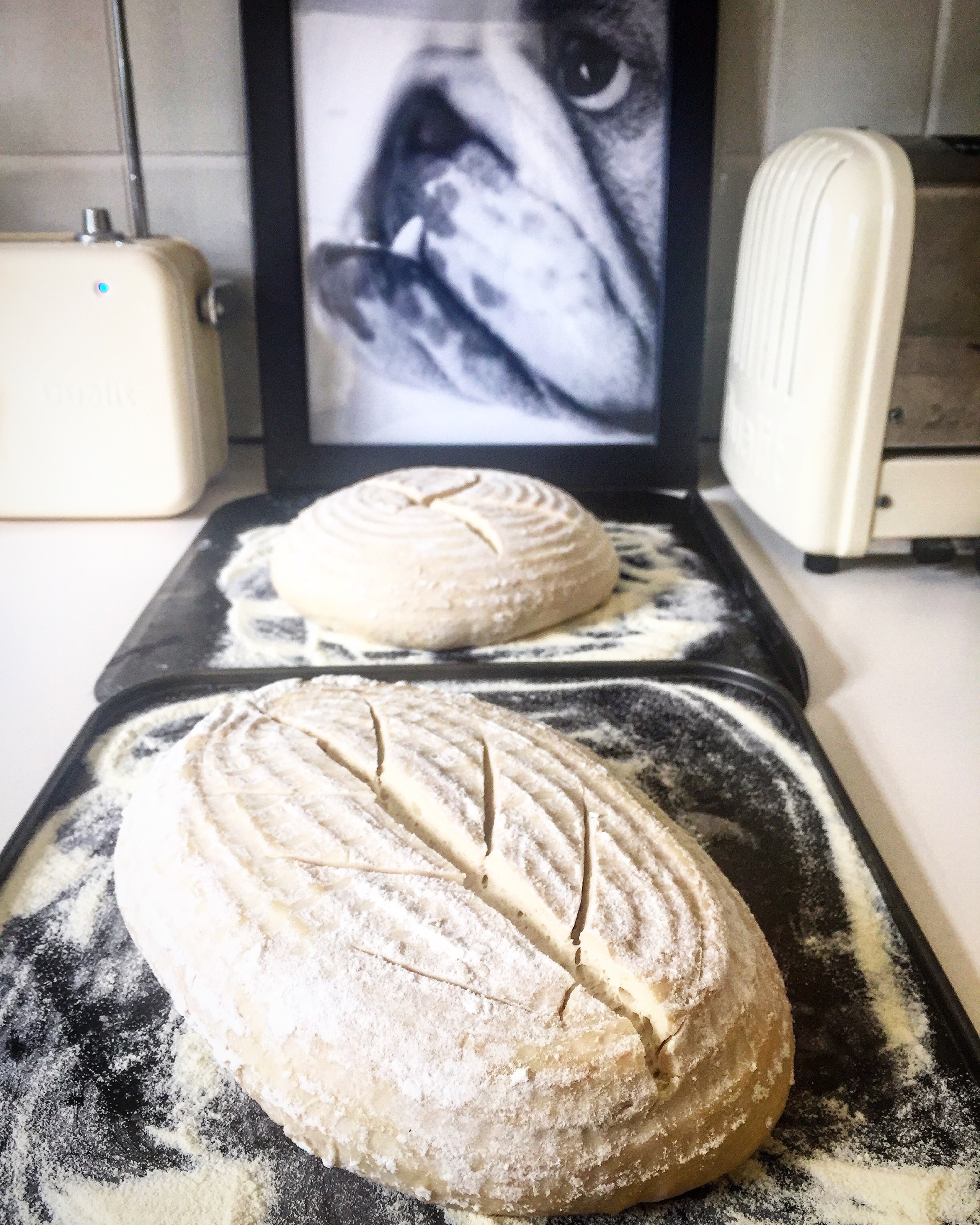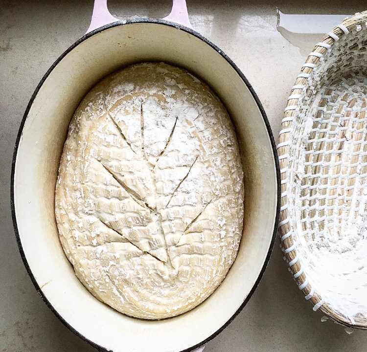 For the sake of a tenner I am going to advise you to get a proving basket, or banneton, if we’re getting technical. It really does make the loaf look nicer and it’s easier than free shaping pretty wet dough. You can but them in Lakeland, TX Maxx, and any specialist cook shop or online by clicking on one of these links.