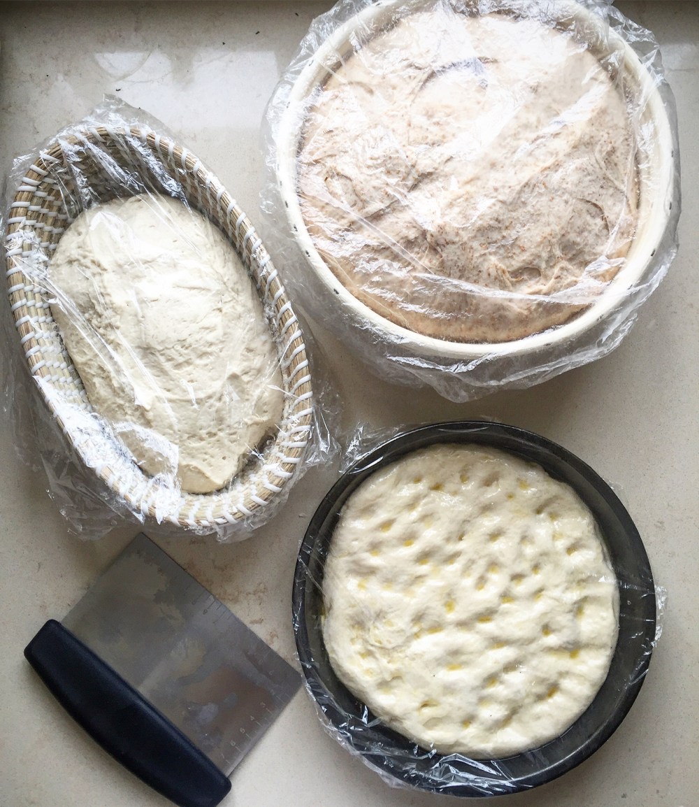 Wholegrain flour (wholewheat or rye) is used at the beginning of the process, even if making a white loaf, because wholegrains contain more nutrients and sourdough-friendly microorganisms than white flour.