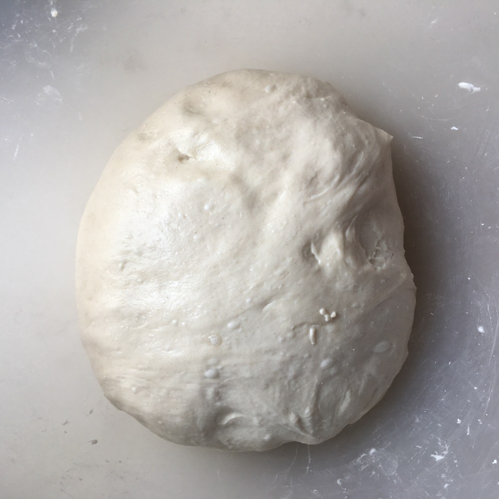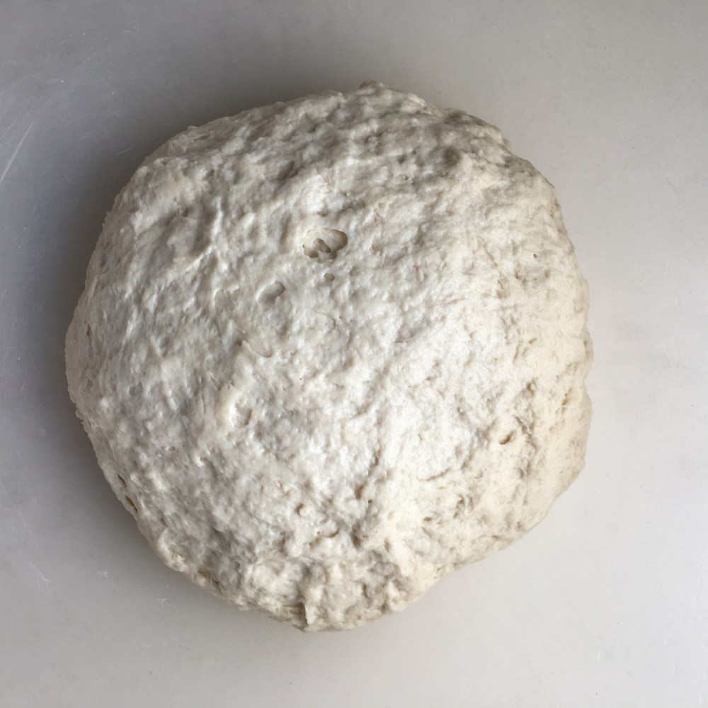 Don’t worry that the dough looks lumpy and rough it with become soft and smooth as you rest and fold it.