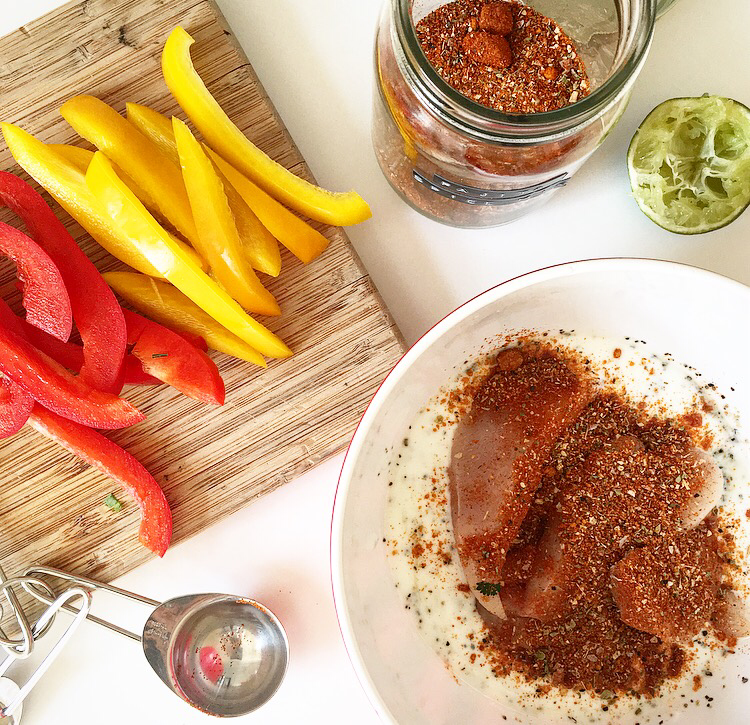 I’ve included a recipe for my fajita spice mix, this will make more than you need but it keeps for months in an airtight container such as a jam jar. So you’ll only need to put the effort in once for lots of future fajita nights! If you do make fajitas a lot I’d recommend doubling the quantities to make twice as much. However if your spice rack or cupboard is pretty bare and the thought of splashing out on all those spices is putting you off trying this recipe, then just use a ready made seasoning mix instead. I’ve used one many times in the past, still do if I’m cooking on holiday and the kitchen has no spice cupboard, with decent results.