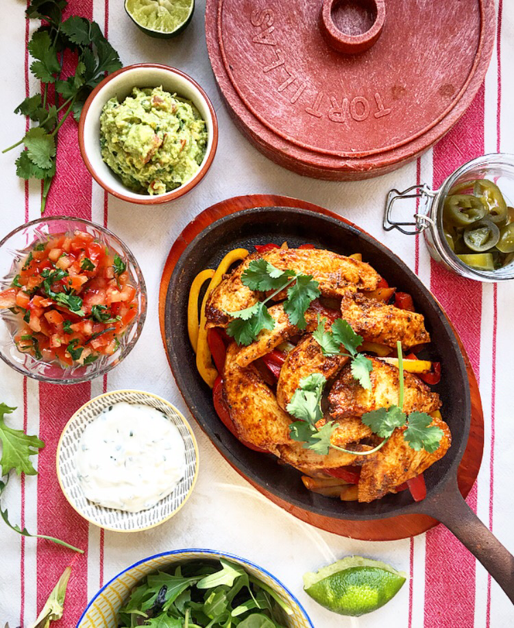 This has to be one of my all time favourite meals, despite the fact that I’ve been cooking it for years, it never gets old. It’s a real crowd pleaser and easy to scale up so it’s ideal if you’ve got friends coming round, I think help-yourself sharing food is brilliant when entertaining, it’s more social and a lot less work for you! You can vary it too; swap the chicken for steak, turkey or lamb, add some fresh mango or pineapple to the salsa or make it veggie by trying chunky slices of portobello mushrooms and grilled halloumi- the options are endless.